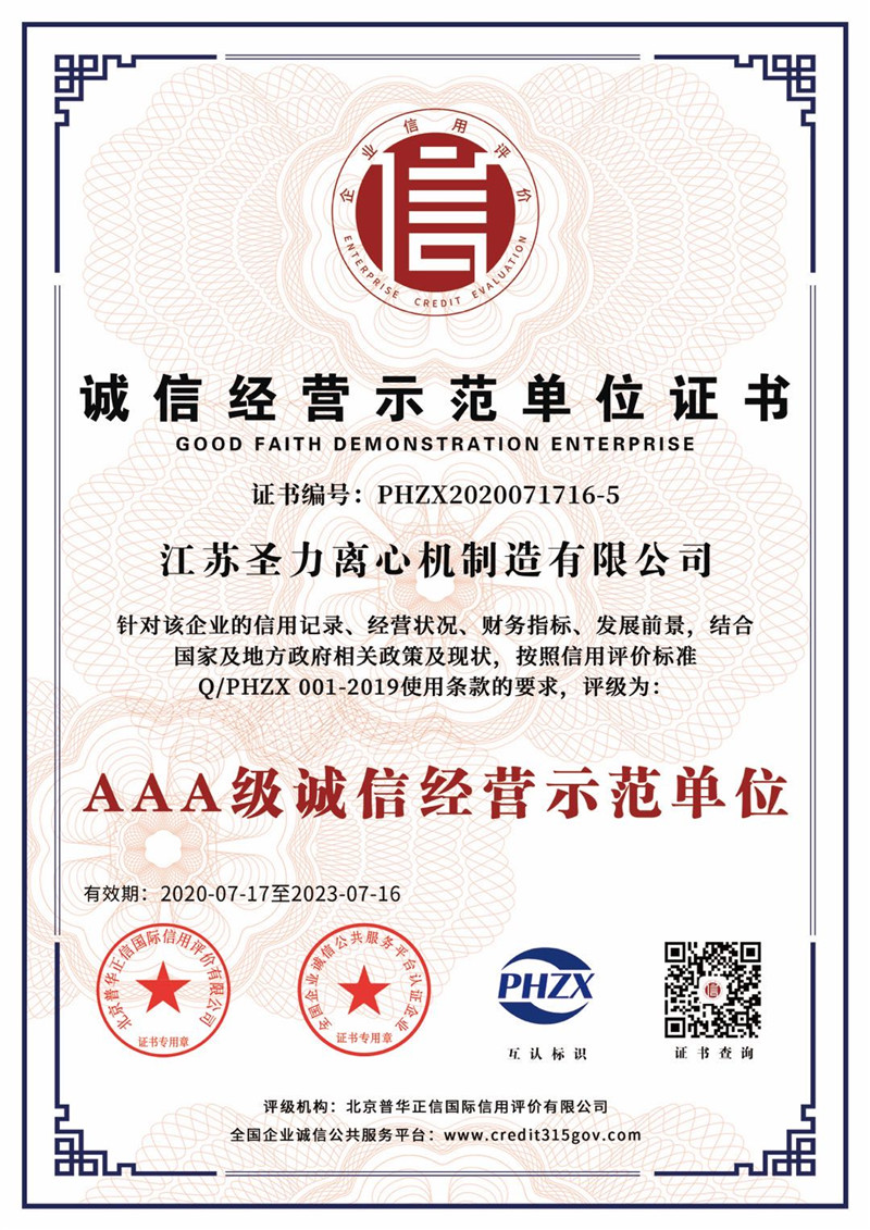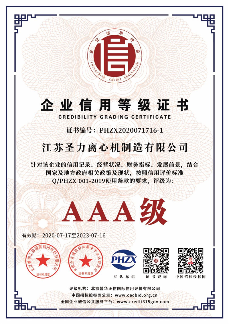 江蘇圣力離心機(jī)制造有限公司是國內(nèi)分離機(jī)械行業(yè)中主要的離心機(jī)生產(chǎn)企業(yè),對離心機(jī)的研究、設(shè)計、制造有多年的歷史,擁有齊全的設(shè)備、完善的檢測手段。公司已通過IS09000國際質(zhì)量體系認(rèn)證、ISO14001環(huán)境管理體系認(rèn)證、ISO45001:2018職業(yè)健康安全管理體系認(rèn)證和CE認(rèn)證,是江蘇省高新技術(shù)企業(yè),曾榮獲國家和地方多項榮譽(yù)稱號。